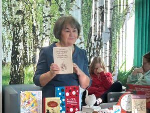 Szkoła i książka przewija się także przez moje życie. Najpierw chodziłam do niej, potem byłam nauczycielką, a ostatnio wystąpiłam jako prelegentka. Moim celem nie było nakłonienie młodych ludzi do czytania „Alicji w Krainie Czarów”. Pokazałam, jak książka może wpłynąć na całe życie człowieka. Tym razem zaprosiła mnie pani Krystyna Szczęsny, polonistka i bibliotekarka w Zespole Szkół nr 2 im. Wojciecha Korfantego. Na wspaniale zainscenizowanej scenie, oddającej klimat Krainy Czarów, zaprezentowałam niewielką część Carrolliańskiej kolekcji. Wprowadziłam uczestników spotkania w tajniki „Alicji w Krainie Czarów”, bajki dla dzieci, która podbiła także świat dorosłych. Wyjaśniałam fenomen książki, która po 160 latach nie straciła swego uroku i jest nieustającym źródłem inspiracji dla artystów na całym świecie. Musiałam zrobić odpowiednie wrażenie, ponieważ jeden chłopak tak się wczuł w moje opowiadanie, że odpłynął razem z Alicją i Lewisem Carrollem w słoneczne letnie popołudnie. Nikt się nie spodziewał, jak daleko sięgają wpływy Krainy Czarów.